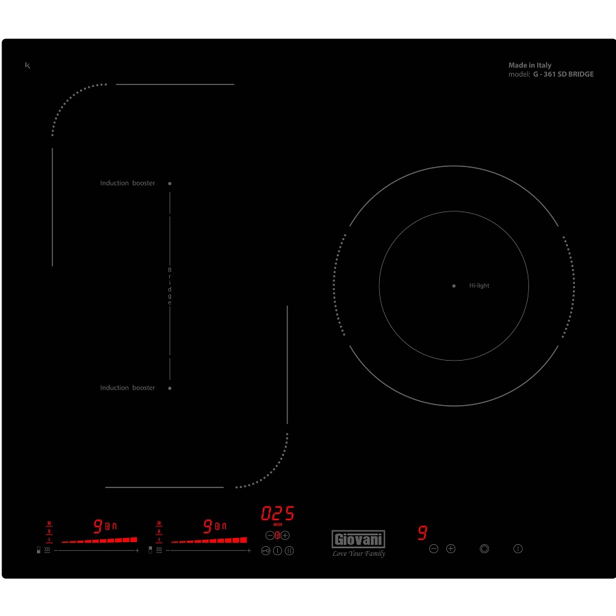 Bếp điện từ Giovani G – 361 SD Bridge bếp được thiết kế kiểu dáng vuông với sự kết hợp của 2 bếp từ và 1 bếp hồng ngoại, điều đặc biệt ở model này chính là bếp có chức năng kết hợp 2 vùng nấu từ nhỏ thành 1 vùng nấu từ lớn do vậy bạn có thể sử dụng cả những xoong nồi có kích thước lớn giúp bạn thuận tiện hơn trong quá trình sử dụng.